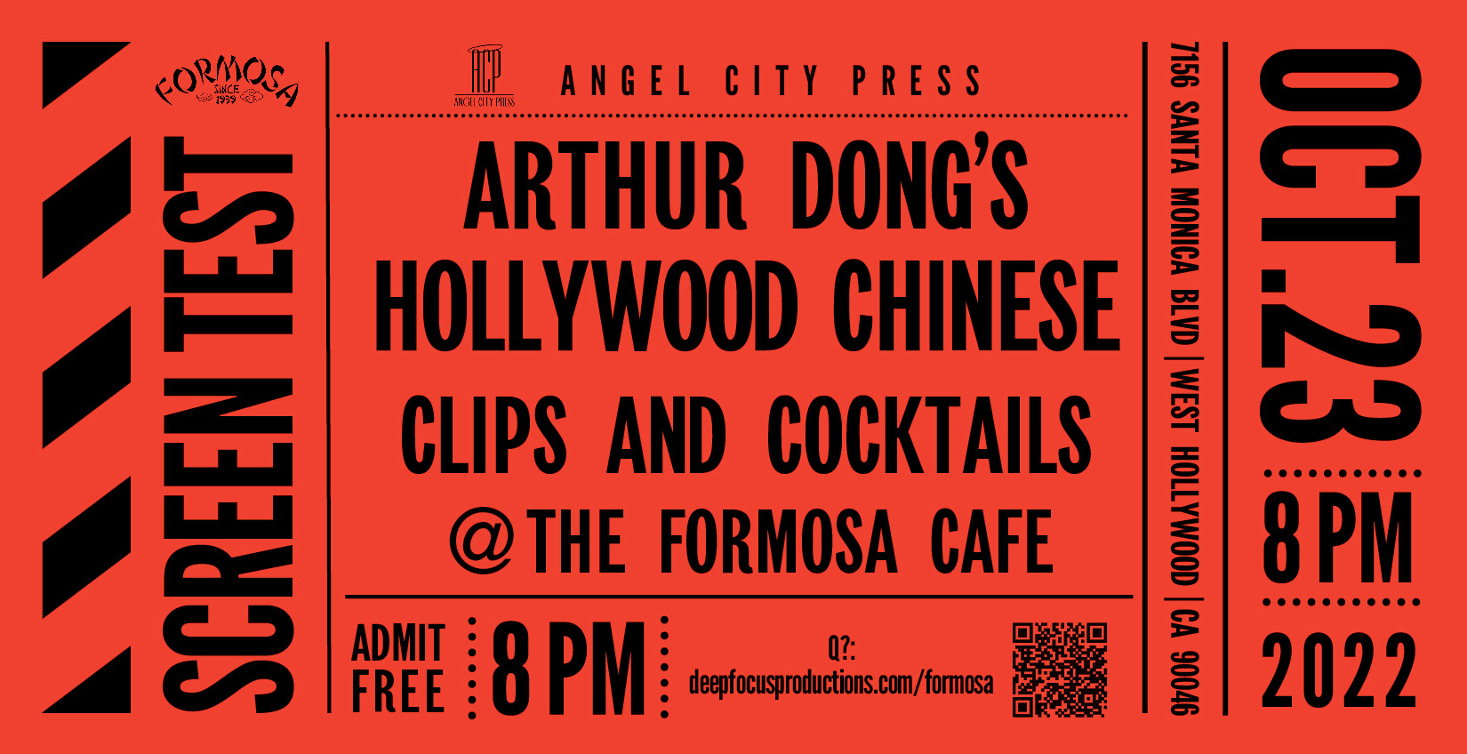 Join author and filmmaker Arthur Dong on the rooftop of the iconic Formosa Cafe in West Hollywood for a sneak peek into his upcoming Hollywood Chinese series at the Academy Museum. Free, no minimum.